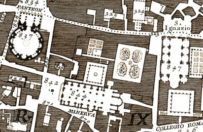 En 1748, l’architecte italien Giambattista Nolli édita le plan le plus précis jamais réalisé de Rome avec une particularité qui le rendit célèbre à tous les étudiants de première année d’architecture, jusqu’à nos jours : il représentait de la même façon (comme du “vide”, accessible”) les espaces publics et les rez-de-chaussée accessibles au public — à l’époque, l’intérieur des églises et la cour des palais. Il formalisait ainsi l’idée selon laquelle les rez-de-chaussée, visibles et accessibles, à la fois premier des étages privés et ultime extension de l’espace public, appartiennent à la fois au domaine public et au domaine privé.