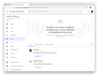 Google Business est l’application qui permet à chaque local actif (commerce, équipement public) de gérer sa visibilité sur Google Maps. Adresse, jours et horaires d’ouverture, photos des produits et des espaces ainsi que, depuis peu, catalogue et promotions, peuvent y être recensés et mis à jour, pour être ensuite mis en avant dans Google Maps. Google investit une énergie considérable dans cette application, afin de la rendre accessible à tous et addictive. Comme tout réseau social prédateur d’attention, l’appli n’a de cesse de notifier le commerçant sur tout et n’importe quoi — le nombre de visiteurs de son adresse “virtuelle”, les “likes” reçus par un client, la chalandise numérique ou physique qu’il a généré — et de l’inviter sans cesse à fournir davantage de données à la plateforme.