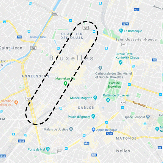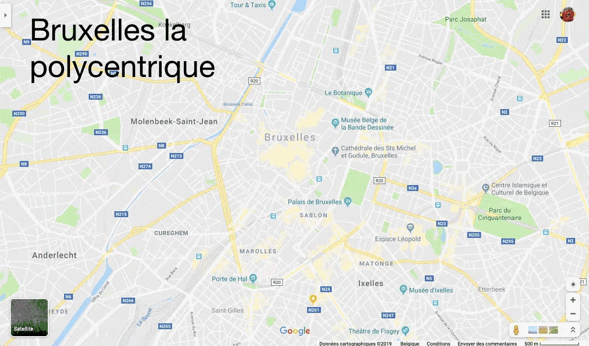 Les dynamiques actuelles de piétonnisation, éloignées de ce qui se joue outre-Atlantique, sont aussi maltraitées : . le boulevard Anspach, nouveau grand piétonnier bruxellois de plus de 30m de large, disparaît de la carte en étant relayé au maigre statut de sente piétonne alors qu’il s’agit de l’axe structurant de la ville en termes de renouveau de l’espace public, de commerce et de représentation mentale de la ville.