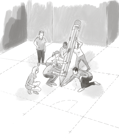 Ensuite, nous créons la communauté de projets sur laquelle repose la conception de solutions en allant vers les publics les plus éloignés des cercles de concertation et de participation habituels. Sans cette communauté, nous n’irions pas bien loin, car ce sont les usagers et habitants, c’est-à-dire les premiers concernés par le problème, qui sont le plus à-même de le résoudre. Dans les projets urbains, nous cherchons par exemple à capter des jeunes adolescent.e.s, des mamans isolées, des personnes âgées qui ne sortent presque jamais de chez elles, des adolescent.e.s ou jeunes hommes installés dans les halls. Nous avons vite compris que la résidence avait évolué en inadéquation avec leurs besoins car ils n’avaient pas voix au chapitre.