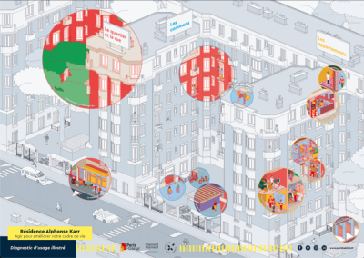 La place des enfants dans les espaces communs ne fait pas consensus et cristallise les tensions du voisinage. Ces derniers se retrouvent souvent évincés des espaces de jeu extérieurs – ils sont perçus comme perturbateurs par certains voisins, ou encore trop bruyants le soir et l’après-midi, habituels temps de repos pour les personnes âgées et les travailleurs nocturnes. Si les habitants sont nombreux à souhaiter accorder plus de place aux enfants, peu souhaitent les voir jouer sous leurs fenêtres. Alors, comment créer un cadre de cohabitation apaisée ? Cet exemple montre l’importance de réfléchir ensemble, pour inventer de nouveaux modes de gestion des espaces de vie “communs”, c’est-à-dire des espaces réellement partagés qui deviennent une ressource pour toute une communauté. Derrière la rénovation d’une résidence, il n’y a pas que des plans, mais tout une ingénierie sociale de l’habiter à repenser : les communs ne se décrètent pas, ils se conçoivent avec les habitants qui en ont besoin.